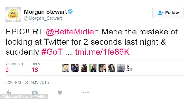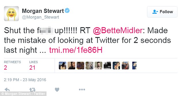 Then Morgan took to Twitter one last time to post about the share, gushing: ‘When @bettemidler tweets anything having to do with #RKOBH.’