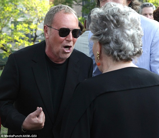 Designer Michael, 56, who is worth $1 billion, looked a million dollars in a black suit jacket, blue jeans and leather shoes.