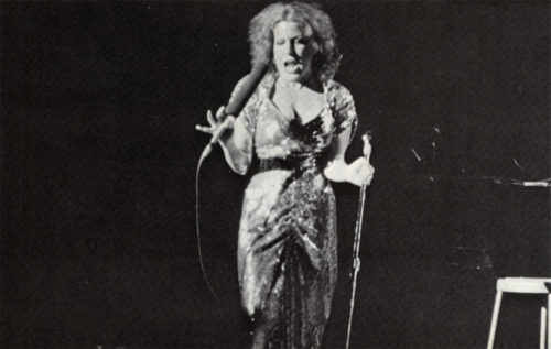 But where on her first album, “The Divine Miss M,” she glides, slides and soars through “Am I Blue,” pushing it to the outer limits of poignancy, but not a quavering note further, as though it hadn’t been through the wringing hands of a bedraggled army of torch singers before her, at the Palace she chooses to be gayer than gay and lonelier than lonely.