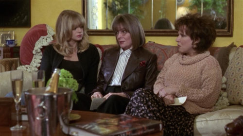 An early scene in the film unites all the first wives, Elise, Brenda, and Annie (Diane Keaton), having lunch after the funeral of another first wife, Cynthia. Cynthia committed suicide after being left by her husband for a younger, blonder model, and these three women are in the same boat: fortysomething, newly single, and therefore with little left to live for. (“Bye bye, love. Hello, Pop-Tarts.”)