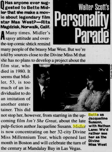 Bette Midler, Mae West, Miss Millennium, Isn’t She Great