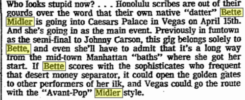 BetteBack March 26, 1976: Bette Midler Heading To Vegas
