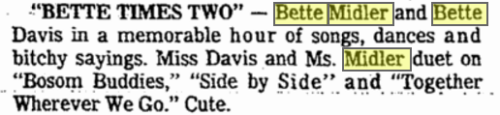 Bette Midler, Bette Davis, TV, Summer Special