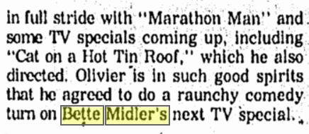 Bette Midler, Laurence Olivier, Ol Red Hair