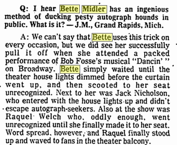 BetteBack June 18, 1978: How Bette Midler Ducks Pesky Autograph Hounds