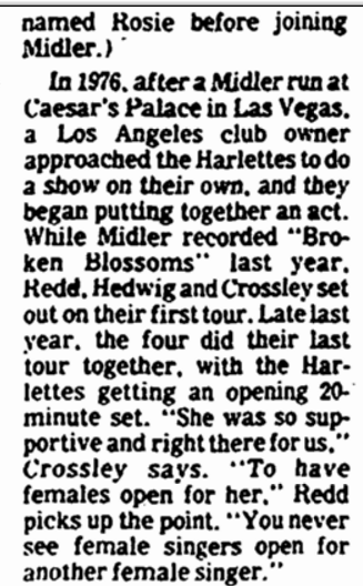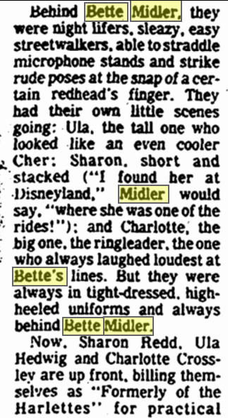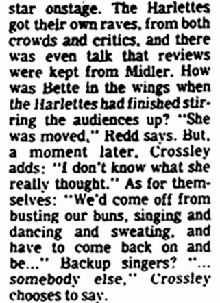Harlettes. Charlo Crossley, U;a Hedwig, Sharon Redd, Bette Midler, Formally Of The Harlettes, Labelle