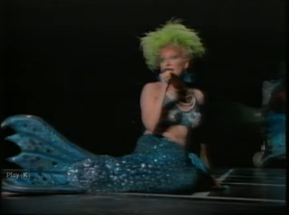 This bit debuted in her late 1970s/early 1980s cabaret shows and became a highlight in tours like the 1983 Art or Bust (sometimes called “I (We) Will Survive” with the group). It’s been celebrated for flipping the mermaid trope into something defiant and adaptive.