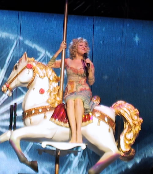 Bette Midler was waist-high through the roof of a tent, wearing