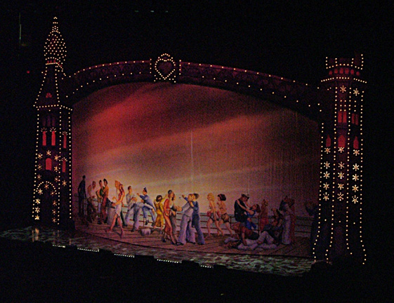 with a boardwalk scene, complete with a curtain painted with a 1940s