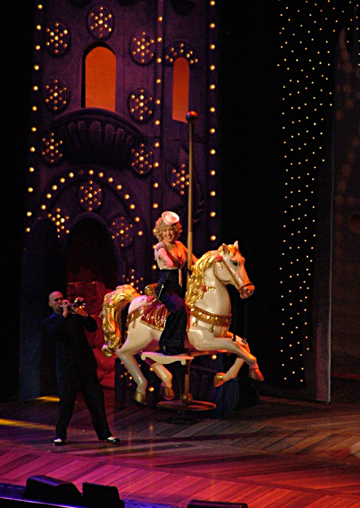 stage on a carousel horse. With horns blaring and the band shouting,
